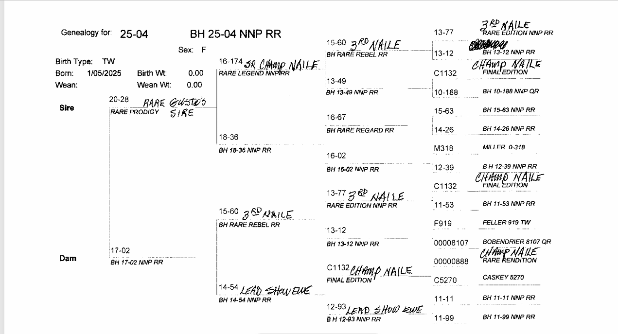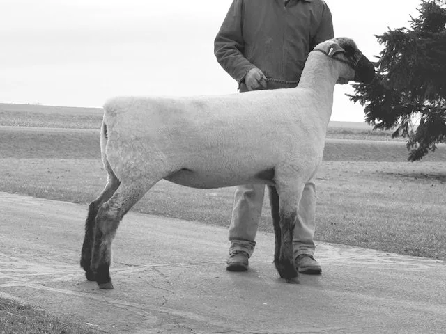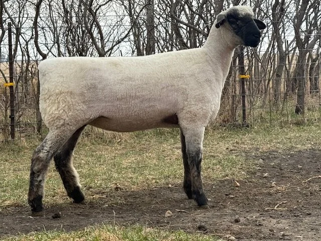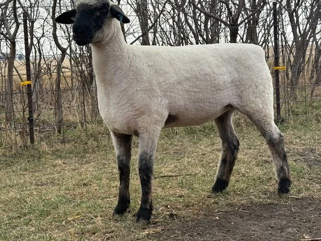 This is a really solid, massive, heavy boned ewe that is sound in all respects. She can be very competitive in the show ring and exceptional in the lambing barn. Her sire, " Rare Prodigy" was the sire of the 2022 National Champion Ram "Rare Gusto".